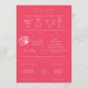 Adicione uma pop de cor ousada ao dia do seu casamento com este programa infográfico rosa-quente moderno. Este design de dois lados inclui ícones de na moda, uma linha cronológica personalizada e detalhes importantes da festa de casamento para ajudar a guiar seus convidados através do seu dia especial. Uma adição divertida e funcional a qualquer celebração com um talento vibrante.