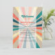 Uma bela design de explosão solar colorida do arco-íris nos anos 70. Uma safra minimalista olha para o casamento O programa Itinerário com padrões de groovy e paleta de cores retrógrada para quem ama padrões de faixa, designs de aflição de paleta retrorcolorida etc. Os convites de casamento e outros artigos de papelaria também estão disponíveis.