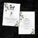 Um design de casamento com guião de Halloween gótico com videiras florais pretas, crânios e coração. Um design branco de Halloween que usa verde botânico preto e escuro junto com a tipografia de caligrafia de vintage. Um design Gothic na moda, ideal para os temas do casamento de Halloween. Um único botânico negro, crânios e design do programa itinerário de casamento cardíaco. Os convites de casamento e outros artigos de papelaria também estão disponíveis.