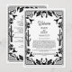 Um design moderno estilo de vaqueiro ocidental, com elementos desenhados à mão de um crânio de vaca, ferraduras, ornamentos florais e de cacto. Design de casamento floral preto e branco, com flores, cacto, crânio de vaca e ferraduras desenhadas à mão. Esta moderna design de casamento do país ocidental é ideal para todas as estações. Um elegante rancho preto-e-branco, design de estilo fazenda ou celeiro, com ilustrações desenhadas à mão. Um cowboy do País Ocidental temia o casamento design do programa Itinerário com elementos elegantes modernos. Os convites de casamento e outros artigos de papelaria também estão disponíveis.