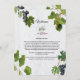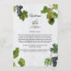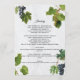 Um belo design com uvas rupestres e folhas de vinhedo no estilo mediterrânico, uma parede branca de lavagem da ilha grega. Um elegante cartão itinerário gráfico de casamento vintage perfeito para casamentos ao estilo grego, italiano e mediterrânico. Os convites de casamento e outros artigos de papelaria também estão disponíveis.