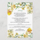 Um jardim floral amarelo e um design de aquarela botânica. Este Primavera e design de verde-vegetação floral de jardim de colheita incorpora diferentes flores amarelas. Uma elegante ilustração botânica das flores de Primavera e Verão, ideal para qualquer casamento. Esta design de ilustração floral cria um elegante sentimento rústico de jardim floral. Design do programa itinerário de casamento elegante com elementos modernos. Os convites de casamento e outros artigos de papelaria também estão disponíveis.