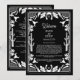 Um design moderno estilo de vaqueiro ocidental, com elementos desenhados à mão de um crânio de vaca, ferraduras, ornamentos florais e de cacto. Design de casamento floral preto e branco, com flores, cacto, crânio de vaca e ferraduras desenhadas à mão. Esta moderna design de casamento do país ocidental é ideal para todas as estações. Um elegante rancho preto-e-branco, design de estilo fazenda ou celeiro, com ilustrações desenhadas à mão. Um vaqueiro do País Ocidental temeu design do programa Itinerário de casamento com elementos elegantes modernos. Os convites de casamento e outros artigos de papelaria também estão disponíveis.