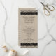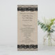 Lace preto bem ilustrado decora este programa de casamentos coloridos de burlap.