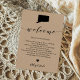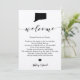 Este cartão moderno e elegante é o símbolo perfeito para as suas bolsas de boas-vindas do hotel. Digite os eventos principais e uma nota personalizada para ajudar seus convidados a navegar no fim de semana.