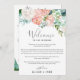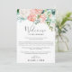 Estes peonias românticos recebem cartas e cartas itinerárias são perfeitas para um casamento elegante. O design floral apresenta flores cor-de-água, cor-de-rosa-claro, cor de pêssego e branca em cascata. A frente da carta apresenta uma carta de boas-vindas e a parte de trás da carta apresenta o itinerário do casamento. Estas notas são perfeitas para casamentos de destino e bolsas de boas-vindas de hóspedes.