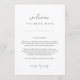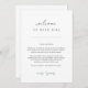 Compartilhe uma mensagem de boas-vindas para seus convidados de casamento, bem como um itinerário ou agenda dos eventos do fim de semana. Front apresenta sua mensagem de boas-vindas com ênfase em script manuscrito. Personalize o reverso com o dia do casamento ou o itinerário do fim de semana do casamento. Perfeito por incluir nas bolsas de boas-vindas do hotel ou entregar aos quartos dos seus convidados.