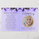 Personalize este programa funerário moderno e elegante com sua própria foto e texto para criar um tributo especial a seu amado. Um programa "In Loving Memory" que apresenta um rosy roxo floral com um programa memorial de sotaque dourado. No cobrir da frente está uma foto do seu amado, seu nome, datas, o local do memorial e a data do evento. Na dentro está um obituário e uma ordem de serviço, e na parte de trás está uma nota de agradecimento e o local da Nossa loja também oferece outros designs que estão oferecendo verde botânico com rosas e folhas de sotaque design e brilho/ouro e folhagem Eucalipto para atender a todas as demandas.