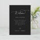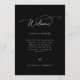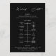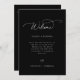 Cartão moderno minimalista de boas-vindas ao casamento e de eventos do fim de semana em preto e branco. Modelo, mensagem de boas-vindas na linha de tempo do itinerário da frente e do fim de semana no verso. Ícones do dia de casamento incluem anéis, coquetéis, ajuste de refeições, bolo, nota musical e carro.