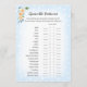 Celebre e jogue este jogo de adivinhação que apresenta o chá de fraldas game com este adorável filhote de leão com buquê floral por baixo e um fundo azul de bebê macio com pontos brancos suaves. Modelos fornecidos para você.