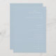 This elegant wedding program features a soft, pastel blue background with delicate white typography that exudes sophistication and charm. The clean layout is organized to guide guests through the ceremony's key moments, making it both functional and aesthetically pleasing. With its minimalist design and serene color palette, this program captures a timeless and romantic mood, perfect for celebrating a special union. It’s an ideal choice for couples looking to create a cohesive and refined look for their big day.