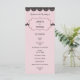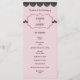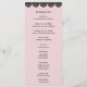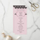 Estes belos programas de casamento são fáceis de personalizar com todos os detalhes da sua cerimônia. Minhas ilustrações de renda preta são colocadas sobre um fundo cor-de-rosa macio para um olhar na moda, moderno. Os dois cartões de programa lado têm os nomes da noiva e do noivo na frente, assim como o calendário de cerimônias e os nomes de todos na festa de casamento, oficiais e pais no verso.
