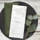 Ilustração delicada e elegante de flores desenhadas à mão e detalhes modernos de tipografia de scripts, em verde e branco escuro, simples e romântico. Programas de casamento floral de excelente para casamento rústico moderno, casamento de jardins de campo e casamento de boho simples no verão e no inverno. Totalmente personalizável com qualquer cor para corresponder ao seu tema de casamento. Veja todas as peças correspondentes na coleção.