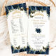 Personalize esta placa de programa fina floral azul-marinho duplo lateral, de forma fácil e rápida, basta clicar no botão Editar Usando Ferramentas-Design para editar o texto, o texto, o estilo da fonte, o tamanho da fonte, a cor da fonte, adicionar mais texto, mover ou remover algumas imagens. As borboletas e a coroa dourada são móveis, redimensionáveis, multiplicáveis e amovíveis. Personalize-o para se adequar à sua ocasião. Perfeito para Quinceañera, Doce 16, 18º Aniversário, Festa Princesa, Bola Debutante, Chá de panela, Batismo/Cristo e mais ocasião! Itens correspondentes disponíveis no repositório! c) O Feliz Cat Studio