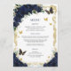 Concebido para coordenar com a nossa coleção Floral Azul Marinho, este menu elegante inclui flores azuis marinho de cor aquosa e borboletas. Personalize-o com a sua própria redação e detalhes de forma fácil e rápida, basta pressionar o botão personalizar para reorganizar e formatar o estilo e a colocação do texto. Duplo lado. Excelente para quinceanera, doce 16, chá de fraldas, chá de panela, casamento, festa de aniversário e mais ocasiões! Coordenando os itens disponíveis na loja do Feliz Cat Studio Zazzle! c) O Feliz Cat Studio