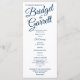 Texto Elegante Designer marinho azul sobre o programa de casamento de cartão de rack impresso branco com texto e opções de cores completamente personalizáveis. Selecione cor de fundo e cores de texto preferidas para combinar qualquer casamento.