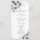 Programa de Casamento de Rosas marinhos Azuis e Brancas. Este na moda e elegante chá de casamento apresenta lindas cores d'água Marinho Blue e White Roses pintadas manualmente. Localize itens correspondentes na Coleção de Rosa Azul e Branco do Marinho.