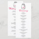 Um programa de casamento bonito com um jarro de mason com iniciais e um coração cor-de-rosa na etiqueta. Preto, branco e rosa. Três fontes: um padrão aflitivo, um roteiro aflitivo e um sans serif. Limpo e romântico!