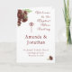 Design apresenta seu texto no formato tradicional de Massa Nupcial Católica exibido em uma fonte de cor burguesa contra um fundo branco. Rosas ruidosos que cortam a esquina. A imagem burguenta de uma cruz e anéis de casamento é exibida na frente abaixo dos nomes. Dentro design segue o formato tradicional de uma missa nupcial católica. Espaço para até seis damas de honra e Padrinhos de casamento. As costas incluem uma mensagem personalizável de gratidão e um memorial opcional para aqueles entes queridos que passaram. Também inclui espaço para sua foto. Todo texto é personalizável. Projetado para coordenar com a coleção de Suite de Casamento Rosa-Córsega da Igreja Católica.