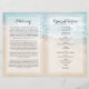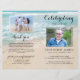 Programa de memórias do funeral de orçamento apresentando na frente uma foto do seu ente querido, seu nome, datas, local memorial, data do evento e um fundo litoral de verão na praia. Na dentro está um obituário, e a ordem de serviço; e atrás de outra foto, uma nota de agradecimento e o segundo lugar para depois do funeral. POR FAVOR, NOTE: Estes vêm como um pedaço de papel de qualidade, você mesmo terá que dobrá-los.