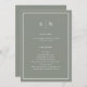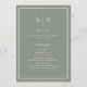 Estes elegantes e modernos programas de casamento apresentam um design de texto minimalista verde sábio e branco, com uma estrutura clássica na fronteira. Adicione suas iniciais ou monograma para torná-las completamente suas.