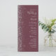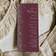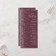 A borda esquerda deste elegante programa de casamento moderno apresenta um design brilhante falso prateado. O texto personalizável combina a escrita manual de cinzas prateadas, fontes em copperplate e itálico em um fundo burgundy.
