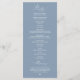 Modern Classy Elegant Wedding Ceremony Program card. It is designed with scroll accent that can be personalised with custom/ personalised text for your bridal party, ceremony details, memorial notes and thank you message, in dusty blue.