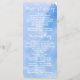 A moderna cerimônia de casamento no inverno azul de abstrato splash de cor azul e programa de festas com pintura manual de cor d'água com textura em tons azuis, árvores em branco com neve, flocos de neve e texto em branco e cinza. Este design de casamento elegante e na moda é um modelo perfeito para o seu casamento no inverno. Note que esta é apenas uma imagem de aquarela e não textura real. Para obter melhores resultados, escolha feltro ou outro tipo de papel com textura.