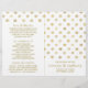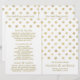 Estes programas dobrados são perfeitos para qualquer casal planejando uma tenda celebração de casamento. O design apresenta um fundo de bolinhas na moda em branco e ouro com uma redação dourada correspondente. O design simples pode ser personalizado para se adequar ao seu evento especial e será a ordem de serviço perfeita para qualquer partido moderno, incluindo chás de panela, noivados, chás de casamento, festas de aniversário e muito, muito mais.