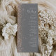 A borda esquerda deste elegante programa de casamento moderno apresenta um design falso de pêssego. O texto personalizável combina manuscrito branco, fontes em copperplate e itálico em um fundo de cinza.