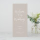Programa de casamento com moderno roteiro de caligrafia manuscrito em bege neutro, personalize as costas com suas próprias informações.