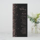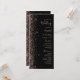 A borda esquerda deste elegante programa de casamento moderno apresenta um rosa dourado faux glitter design. O texto personalizável combina letra rosa pálida, letra copperplate e letra itálico num fundo preto.