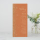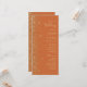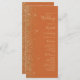 A borda esquerda deste elegante programa de casamento moderno apresenta um design de brilho dourado. O texto personalizável combina manuscrito pálido de cor dourada, fontes copperplate e itálico em um fundo laranja queimado.