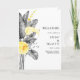 Este moderno programa de casamento tropical dobrado é perfeito para o seu casamento de destino de boho de verão. Projetado com o clássico elegante amarelo floral que se pop a partir de cinza verde costeiro, incluindo folha de palma e samambaia. Com todas essas coloridas flores aquáticas e folhas de cinza, você tem certeza que tem a praia boêmica que você está procurando.