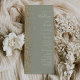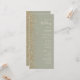 A borda esquerda deste elegante programa de casamento moderno apresenta um design de brilho dourado. O texto personalizável combina manuscrito de marfim, fontes em copperplate e itálico em um fundo verde de sábio.