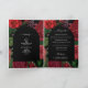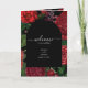 Um belo design que mostra florais escuros, vermelhos e arrojados, num fundo preto e um arco preto. Perfeito para qualquer pessoa que ama designs de flores coloridas e tons escuros. Um elegante design floral preto e vermelho de marrom. Um rosa de casamento de flor silvestre e design com elementos modernos. Os convites de casamento e outros artigos de papelaria também estão disponíveis.