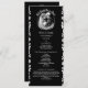 Aceite seu amor eterno com este elegante e assustador programa de casamento gótico. Perfeito para uma celebração temática de alternativo ou Halloween, este design apresenta uma bela ilustração de "Morte até nós Parte" de um casal esquelético num abraço amoroso. O dramático esquema de cores preto e branco adiciona um toque de romance macabro ao seu dia especial. Este programa é um modelo totalmente editável, permitindo que você personalize facilmente todos os detalhes, desde seus nomes e ordens de cerimônia até os membros de sua festa de casamento querida. Guie seus convidados através dos momentos sagrados de seu sindicato com uma manutenção que captura perfeitamente seu estilo único.