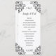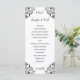 Deixem seus convidados seguirem com sua cerimônia de casamento em estilo com este belo programa de casamento entre vintagas pretas. Este design está definido em preto, mas você pode alterá-lo para qualquer cor que quiser alterando a cor de fundo. COMO ALTERAR A COR DO DESIGN: Escolha "PERSONALIZAR", "PERSONALIZAR" OU "EDITAR" e escolha uma nova "Cor de fundo".