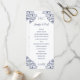 Deixem seus convidados seguirem com sua cerimônia de casamento em estilo com este belo programa de casamento entre vintagas pretas. Este design é definido em marinho azul, mas você pode alterá-lo para qualquer cor que quiser alterando a cor de fundo. COMO ALTERAR A COR DO DESIGN: Escolha "PERSONALIZAR", "PERSONALIZAR" OU "EDITAR" e escolha uma nova "Cor de fundo".