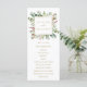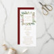 Este programa de casamento apresenta eucalipto pintado à aquarela, folhas verdes, frutos vermelhos, ramos de pinheiro e uma moldura quadrada dourada falsa com um fundo vermelho no verso. Para personalização mais avançada deste design, clique no link "Personalizar ainda mais". Itens correspondentes também estão disponíveis.