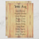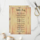 Folha de números da tabela de casamento com lista de nomes. O papel de fundo em grãos de madeira - mostrado aqui no maior peso de 17,5, em maior tamanho - tem um guião preto em negrito no topo do número da tabela e uma lista de nomes impressos abaixo. Ambas as fontes são modernas e têm uma aparência manuscrita. Combinar nomes, se necessário, ou deixar espaços. A madeira rústica é perfeita para um casamento de celeiro ou recepção ao ar livre. Segurem-se num fundo de algum tipo para combinar com o vosso tema de casamento, para uma forma fácil de ajudar os convidados a encontrar as suas mesas. O reverso é vazio com a mesma imagem de madeira. Se for necessário um papel maior, transfira este design para um poster ou um papel de 8 x 11 polegadas.