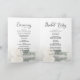 Torne fácil para seus convidados seguirem a cerimônia com esses lindos programas de casamento dobrados. A design apresenta uma design romântica e atordoante com uma rosa branca de marfim empinada de longa solteiro, deitada do lado, espelhada numa piscina de água. Há uma escrita moderna nos títulos com espaço para detalhes sobre a cerimônia, a festa noiva, uma foto, uma nota de agradecimento e um breve memorial. Na parte da frente lê-se "Fazemos" com um coração romântico bonito entre as cartas. Elegante mas divertido, estes programas são uma maravilhosa adição à sua papelaria de casamento.