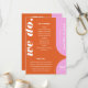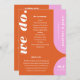 Nosso programa de ordem de serviço de casamento minimalista e ousado em estilo retrô é perfeito para o casal moderno que adora se destacar e fazer uma declaração ousada. Nosso design apresenta uma combinação de cores vibrantes rosa e laranja. Formas simples de arco e círculo criam uma aparência ousada com "Nós Fazemos" exibido de forma destacada em fonte grande e branca. O lado verso apresenta um design moderno simples com um monograma ousado e o endereço do site de casamento do casal, opcional. Desenhado por Moodthology Papery