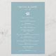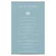 Esta design de casamento é uma mistura perfeita de elegância e estilo clássico. A característica principal do design é um pequeno movimento de flores brancas que se senta graciosamente no centro do fundo poeirento de cor azul.