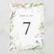 Quadro botânico de flor silvestre elegante, cartão de número de tabela. O cartão apresenta elegantes flores silvestres de aquarela e delicados verdes. Ao encomendar cartões de número de tabela, cada cartão deve ser numerado e encomendado individualmente.