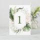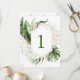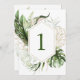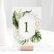 Os cartões de número de tabela temática tropical apresentam um motivo aquoso de verde, flores exóticas cor-de-rosa macio e sotaques dourados. Perfeito para uma praia elegante, um destino ou um casamento ou chá de panela temático de luau. As placas medem 5" x 7" e são de dois lados, de modo que podem ser facilmente vistas de todos os ângulos. Impresso no estoque grosso de cartão, para que possam ser usados com ou sem uma armação.