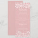 Lindo serviço de ordem cor-de-rosa e branco com redemoinhos florais brancos e trabalho de rolo. O trabalho de rolo floral detalhado e redemoinhos enquadram o texto. Todo o texto pode ser alterado para atender às suas necessidades. A cor e o posicionamento também podem ser alterados. Se você deseja uma combinação de cores personalizada para o seu casamento, clique em 'Contato' acima. Não se esqueça de verificar todos os itens correspondentes para coordenar totalmente o seu casamento ou evento!