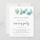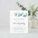 Festa de Casamento Eucalyptus Azul da Noite Convidada. Um alternativo de 4,5 pol x 5,6 pol com preço inferior. Disponível em um STOCK DE CARTÃO SEMI GLOSS 110 lb, que é a opção padrão (recomendada para convites), OU um STOCK DE PAPEL THINNER SATIN FINISH 80 lb (ideal para gabinetes). Os envelopes são um extra opcional e são ligeiramente maiores que o tamanho da placa. Um galho elegante do eucalipto azul-lacrimogênio está no topo seguido pelo texto que você pode personalizar facilmente. Uma cor coordenadora está na parte de trás, que você pode alterar se desejar por meio da opção personalizar mais.