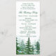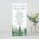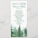 Programa de casamento ordem da cerimônia com árvores de abeto rústicas em aquarela em um fundo de cor escolhida por si. Você pode adicionar o texto de sua escolha para a frente e para trás no estilo de fonte que preferir.
