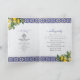 Um moderno monograma de azulejos mediterrâneos e limões, design de casamento, com um fundo branco de lavagem ao estilo mediterrânico. Um design de casamento temático mediterrânico que usa ilustrações aquáticas de azulejos e limões azuis, brancos e amarelos para criar um elegante design de casamento de verão. Um destino charmoso de design de Verão espanhol, grego, italiano ou português, utilizando a tipografia de escrita clássica. Um elegante design do programa de casamento da ordem de serviço do Mediterrâneo ou do campo, azul, branco e amarelo, com elementos modernos. Os convites de casamento e outros artigos de papelaria também estão disponíveis.